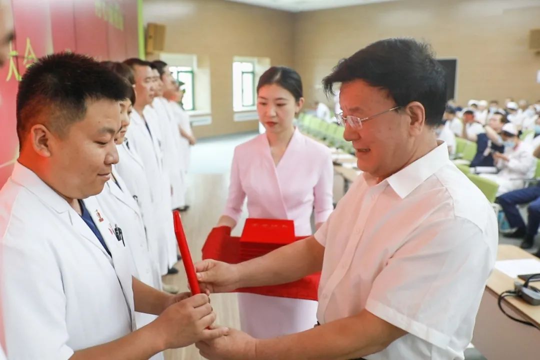 尹強院長、王志峰總經(jīng)理向受到表彰的人員表示祝賀,并分別為10名最美醫(yī)師、10名優(yōu)秀住院總頒發(fā)榮譽證書。