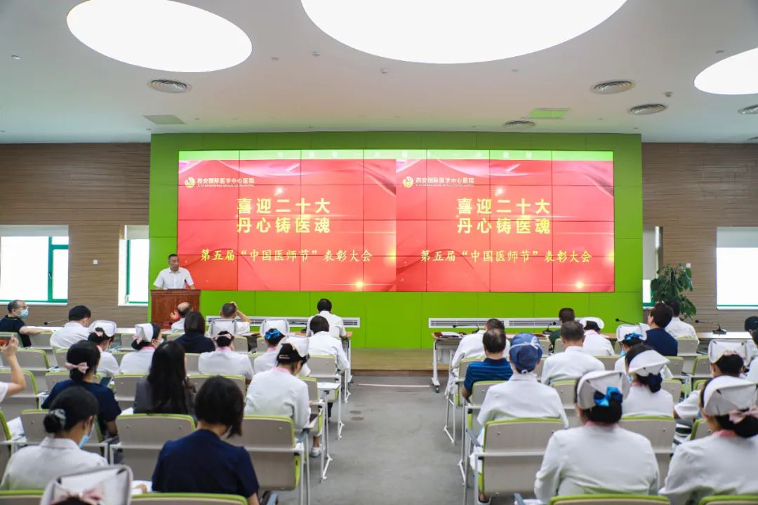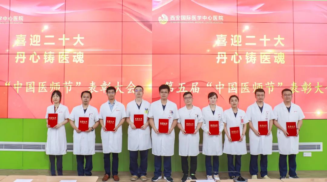 為進(jìn)一步加強醫(yī)師隊伍建設(shè),不斷激發(fā)我院醫(yī)師職業(yè)榮譽感、神圣感、使命感,在中國醫(yī)師節(jié)到來之際,西安國際醫(yī)學(xué)中心醫(yī)院舉行“喜迎二十大 丹心鑄醫(yī)魂”第五屆中國醫(yī)師節(jié)表彰大會。院長尹強、總經(jīng)理王志峰、財務(wù)總監(jiān)王亞星、副院長李武平、楊峰、張斌、劉延彤、付強以及醫(yī)生代表參加。