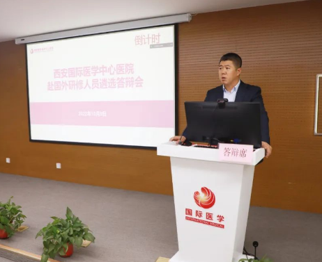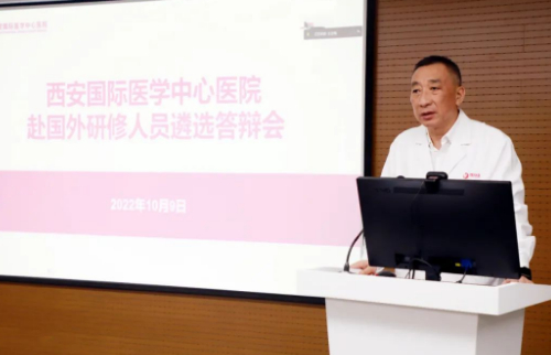 10月9日下午,我院舉行2022年度赴國外研修人員遴選答辯會。院長尹強、總經理王志峰、副院長李武平、楊峰,北院區(qū)賀西京院長以及專家組、答辯選手等醫(yī)護人員,共計100余人參加。會議由張斌副院長主持。