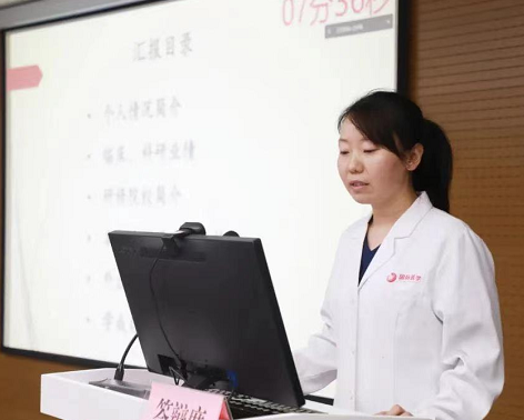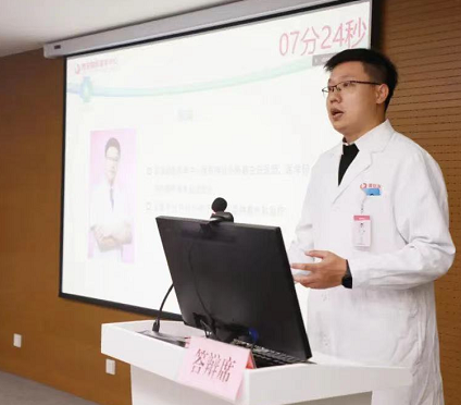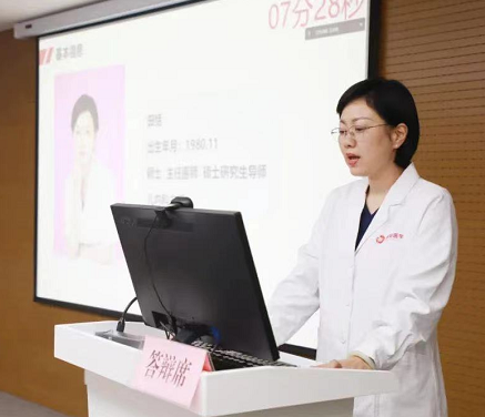 經過前期籌備、選拔、評審,共有9名申請人進入答辯環(huán)節(jié)。按照研修人員遴選流程,呼吸與危重癥醫(yī)學科歐陽海峰、胸腔外科王武平、心臟內科李煒、神經外科鄭濤、生殖內分泌科丁旭、心身醫(yī)學科鄒學、檢驗中心田江紅、醫(yī)學美容中心王延婷、北院區(qū)兒科田恬依次就學歷背景、科研進展、國際交流合作經歷、出國研究意向等方面進行了英文展示與匯報。