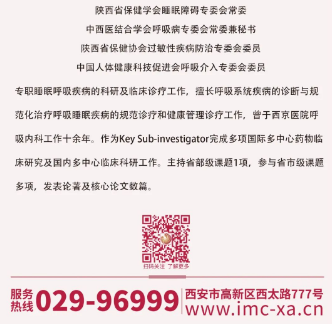 歡迎垂詢西安國際醫(yī)學(xué)中心醫(yī)院胸科醫(yī)院睡眠呼吸障礙診療中心:029-68302616。