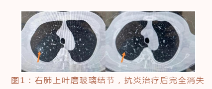 肺內(nèi)的磨玻璃結(jié)節(jié)可以是腫瘤,也有可能是肺部的急、慢性炎癥、肺結(jié)核、肺內(nèi)淋巴結(jié)、慢性肉芽腫性炎,甚至可以是肺內(nèi)的出血灶等。因此,發(fā)現(xiàn)肺部有磨玻璃結(jié)節(jié)不一定都是得了肺癌,炎癥或其它良性病變的可能性也很大??紤]良性病變的結(jié)節(jié)一般只需要定期隨訪和觀察即可;懷疑炎癥時,可以考慮抗炎治療后復(fù)查CT(如圖1:男性患者,體檢發(fā)現(xiàn)右肺上葉磨玻璃結(jié)節(jié),我們考慮炎癥可能,經(jīng)積極抗感染治療,3個月后復(fù)查CT磨玻璃結(jié)節(jié)完全消失)。對于一些確實(shí)懷疑有早期癌變可能的磨玻璃結(jié)節(jié)(包括:純磨玻璃結(jié)節(jié)和有一定實(shí)性成分存在的混合磨玻璃結(jié)節(jié)),則需要根據(jù)結(jié)節(jié)大小、其內(nèi)實(shí)性成分的多少等綜合判斷,制定隨訪和手術(shù)策略。