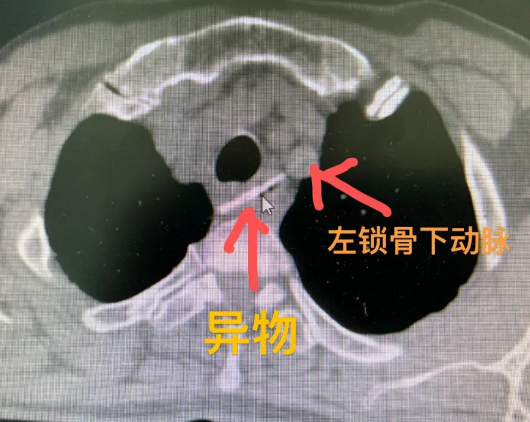 3厘米“V”形雞骨頭卡在食道,咽不下去,吐不出來,更為嚴(yán)重的是,這根硬骨頭距離左鎖骨下動脈僅2㎜......