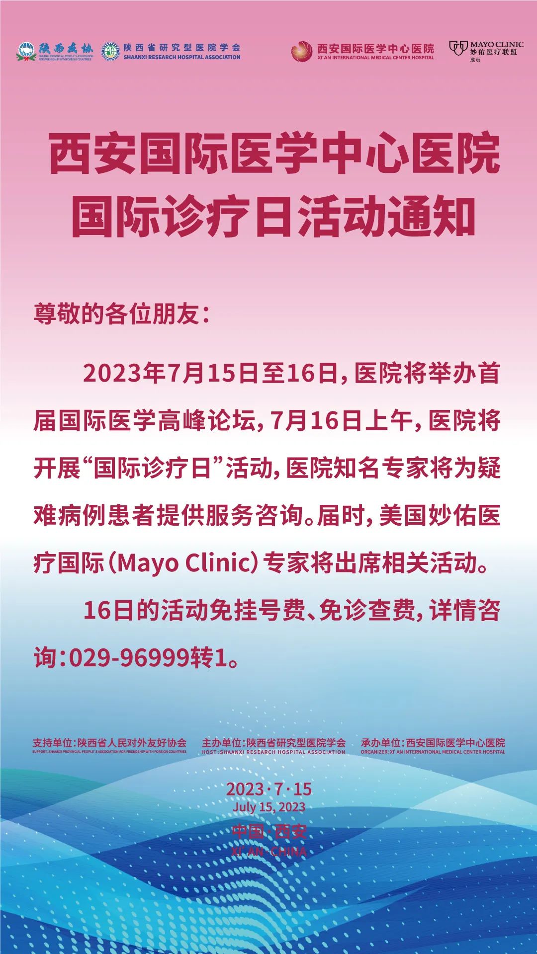 西安國際醫(yī)學中心醫(yī)院國際診療日活動通知
