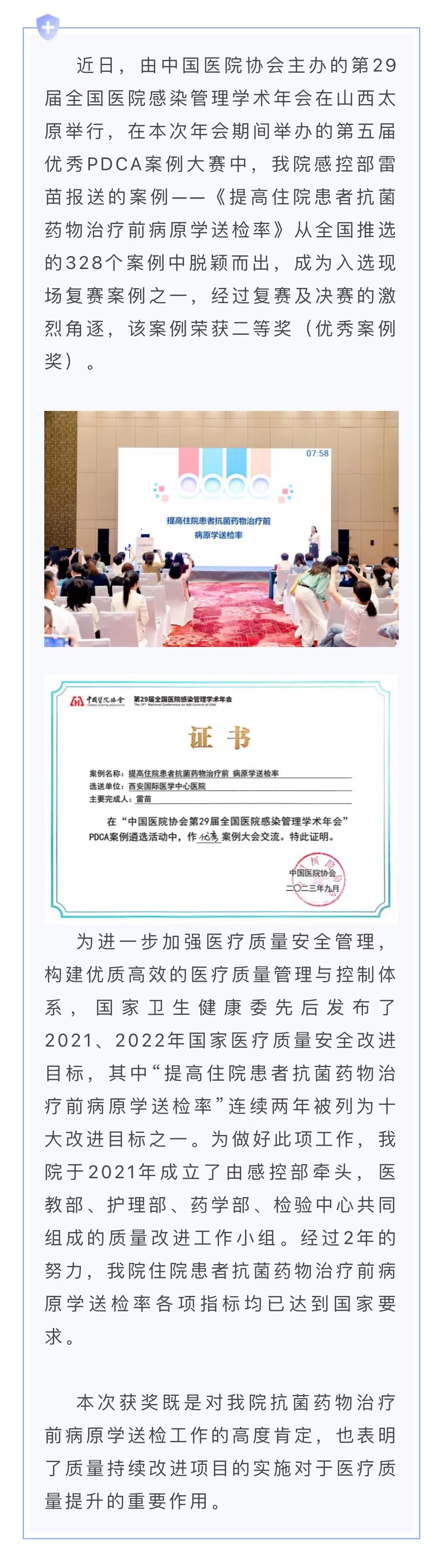 我院榮獲全國(guó)醫(yī)院感染管理學(xué)術(shù)年會(huì)第五屆PDCA案例大賽二等獎(jiǎng)
