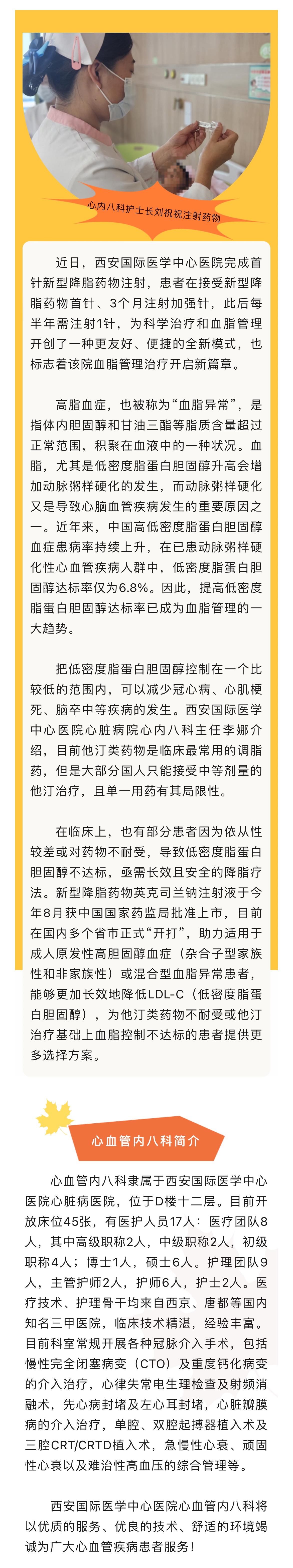 一年2針降脂!西安國際醫(yī)學中心醫(yī)院完成首針新型降脂藥物注射