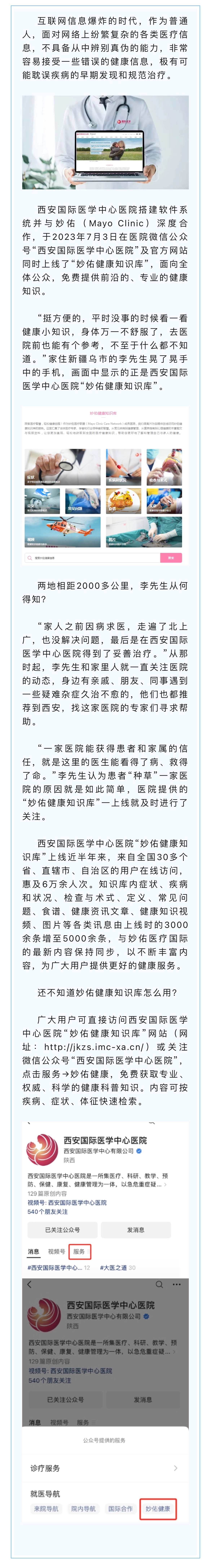 24小時(shí)掌中健康管家——西安國(guó)際醫(yī)學(xué)中心醫(yī)院“妙佑健康知識(shí)庫(kù)”
