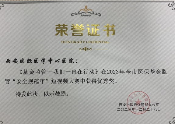 近日,西安市醫(yī)療保障局公布2023年全市醫(yī)?;鸨O(jiān)管“安全規(guī)范年”短視頻大賽評(píng)選結(jié)果,我院宣傳短視頻《基金監(jiān)管——我們一直在行動(dòng)》榮獲優(yōu)秀獎(jiǎng)。