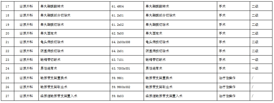 為進一步加強本院日間診療管理,規(guī)范日間診療服務(wù)行為,保障日間醫(yī)療質(zhì)量與安全,按照《醫(yī)療機構(gòu)日間醫(yī)療質(zhì)量管理暫行規(guī)定》、《手術(shù)質(zhì)量安全提升行動方案(2023—2025年)》、《提升醫(yī)療質(zhì)量安全行動計劃(2023-2025年)》等各類文件要求,現(xiàn)將本院2025年度日間手術(shù)目錄公示如下: