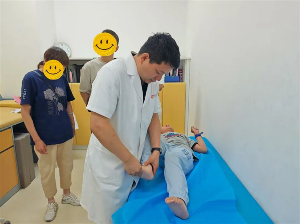 另一邊,楊寧主任近距離觀察孩子的運(yùn)動(dòng)模式,手把手指導(dǎo)家長如何進(jìn)行科學(xué)有效的家庭康復(fù)訓(xùn)練,細(xì)致講解每一個(gè)動(dòng)作的要領(lǐng)和目標(biāo),讓康復(fù)融入日常生活。