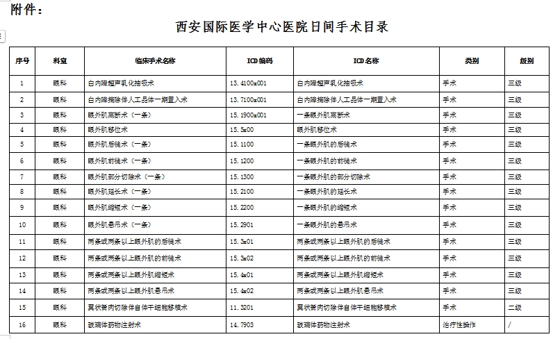 為進(jìn)一步加強(qiáng)本院日間診療管理,規(guī)范日間診療服務(wù)行為,保障日間醫(yī)療質(zhì)量與安全,按照《醫(yī)療機(jī)構(gòu)日間醫(yī)療質(zhì)量管理暫行規(guī)定》、《手術(shù)質(zhì)量安全提升行動(dòng)方案(2023—2025年)》、《提升醫(yī)療質(zhì)量安全行動(dòng)計(jì)劃(2023-2025年)》等各類(lèi)文件要求,現(xiàn)對(duì)我院日間手術(shù)目錄更新,具體公示如下: